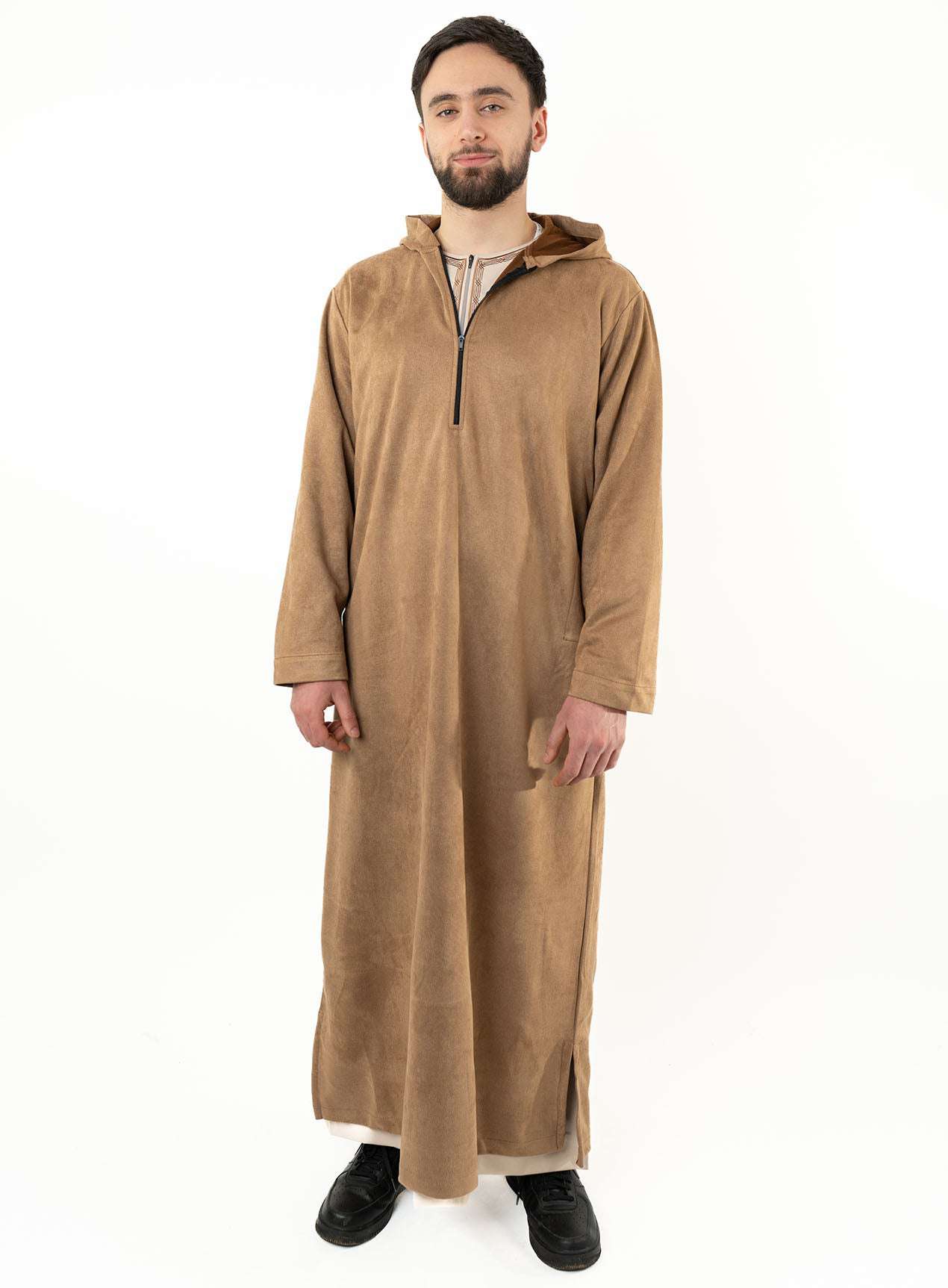 Introducing our latest masterpiece in contemporary luxury: the Platinum Hooded Suede Thobe. Crafted with unparalleled precision and sophistication, this exceptional garment seamlessly blends tradition with modern elegance, redefining the essence of Islamic fashion.
